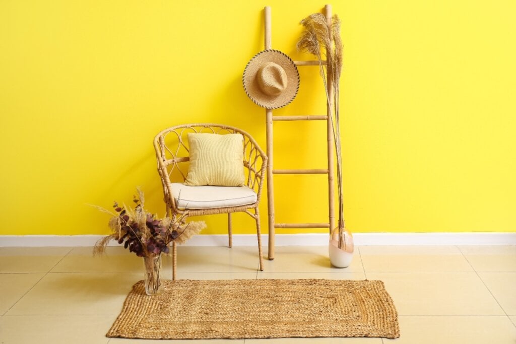 Para deixar o ambiente com mais elementos tropicais, usar materiais naturais faz a diferença. Móveis e objetos feitos de madeira, bambu, ratan e vime ajudam a cultivar uma atmosfera acolhedora e equilibrada. Elementos como poltronas de fibra natural, sousplat e utensílios de bambu, cadeiras de ratan e luminárias de palha reforçam o estilo tropical chic, trazendo leveza ao ambiente. Além do apelo estético, esses materiais melhoram o conforto térmico, tornando os espaços mais frescos e agradáveis em dias mais quentes.