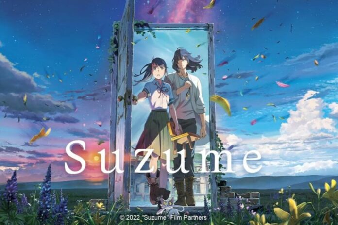 Do mesmo criador de “Your Name“, “Suzume” acompanha a jornada de uma adolescente de 17 anos que, no caminho de volta da escola, conhece um jovem enigmático chamado Souta, que está em busca de portas misteriosas. Intrigada com a missão do desconhecido, Suzume o segue até um prédio abandonado, onde encontra uma porta solitária entreaberta — com vista para um céu estrelado que parece ser a única parte intacta de um cenário devastado.
