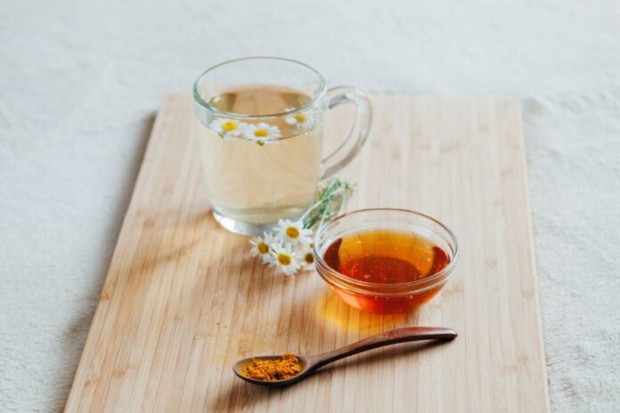 Chá anti-inflamatório de cúrcuma, pimenta-do-reino e camomila
