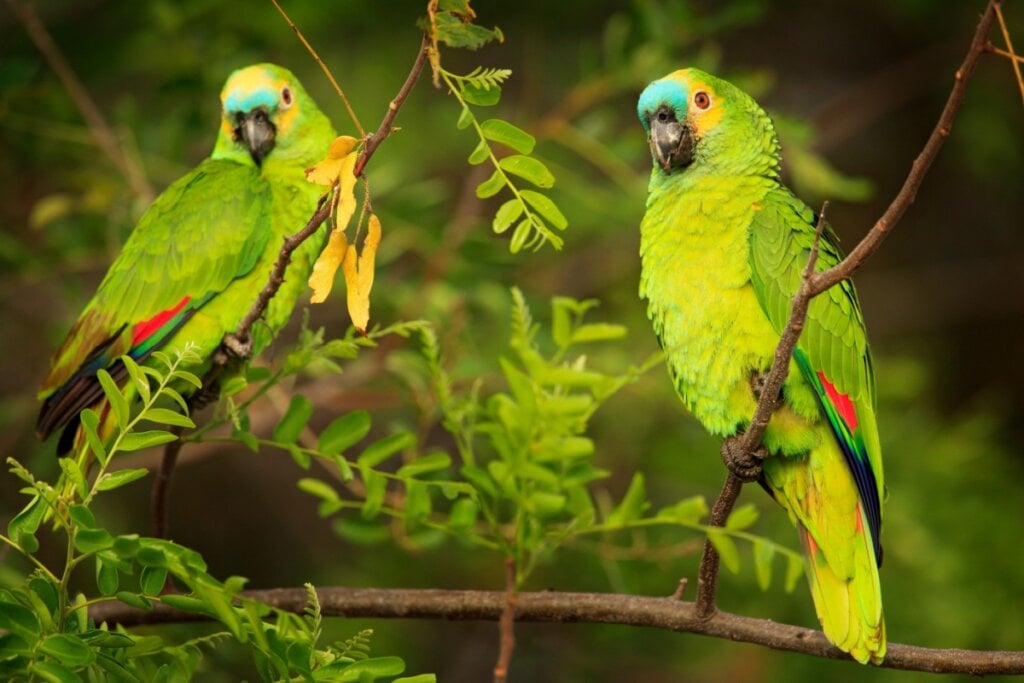 Os papagaios são aves originárias principalmente da América do Sul, África e Oceania. No Brasil, espécies como o papagaio-verdadeiro são bastante comuns e admiradas por sua beleza, inteligência e comportamento sociável.