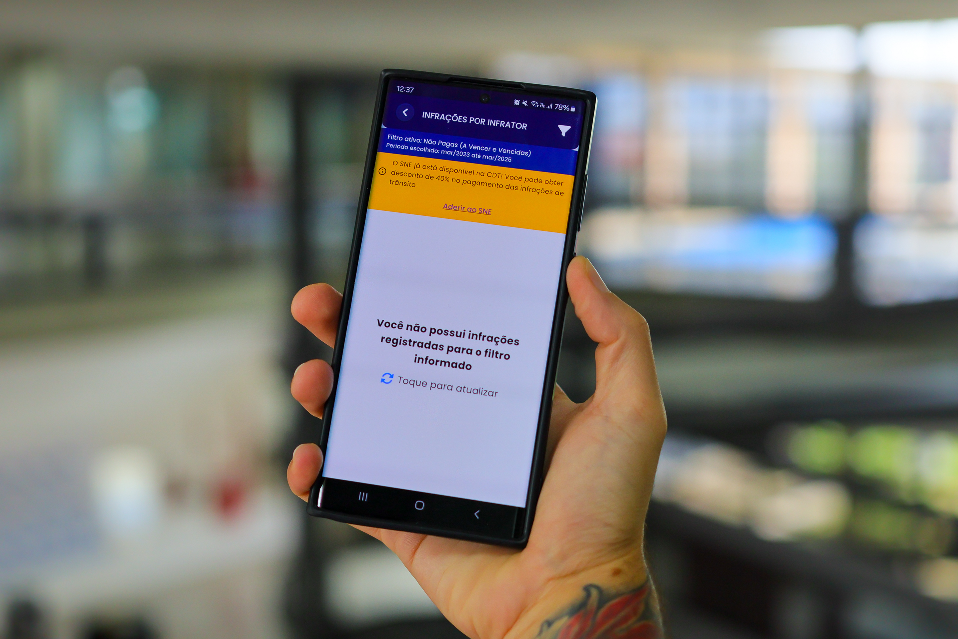 Proprietários de veículos com multas trânsito podem obter um desconto de até 40% no valor da infração. Para isso, é preciso que estejam cadastrados no Sistema de Notificação Eletrônica (SNE), reconheçam a infração e abram mão de apresentar defesa prévia ou recurso. O cadastro pode ser feito pelo aplicativo da Carteira Digital de Trânsito (CDT) ou no Portal de Serviços da Secretaria Nacional de Trânsito (Senatran).