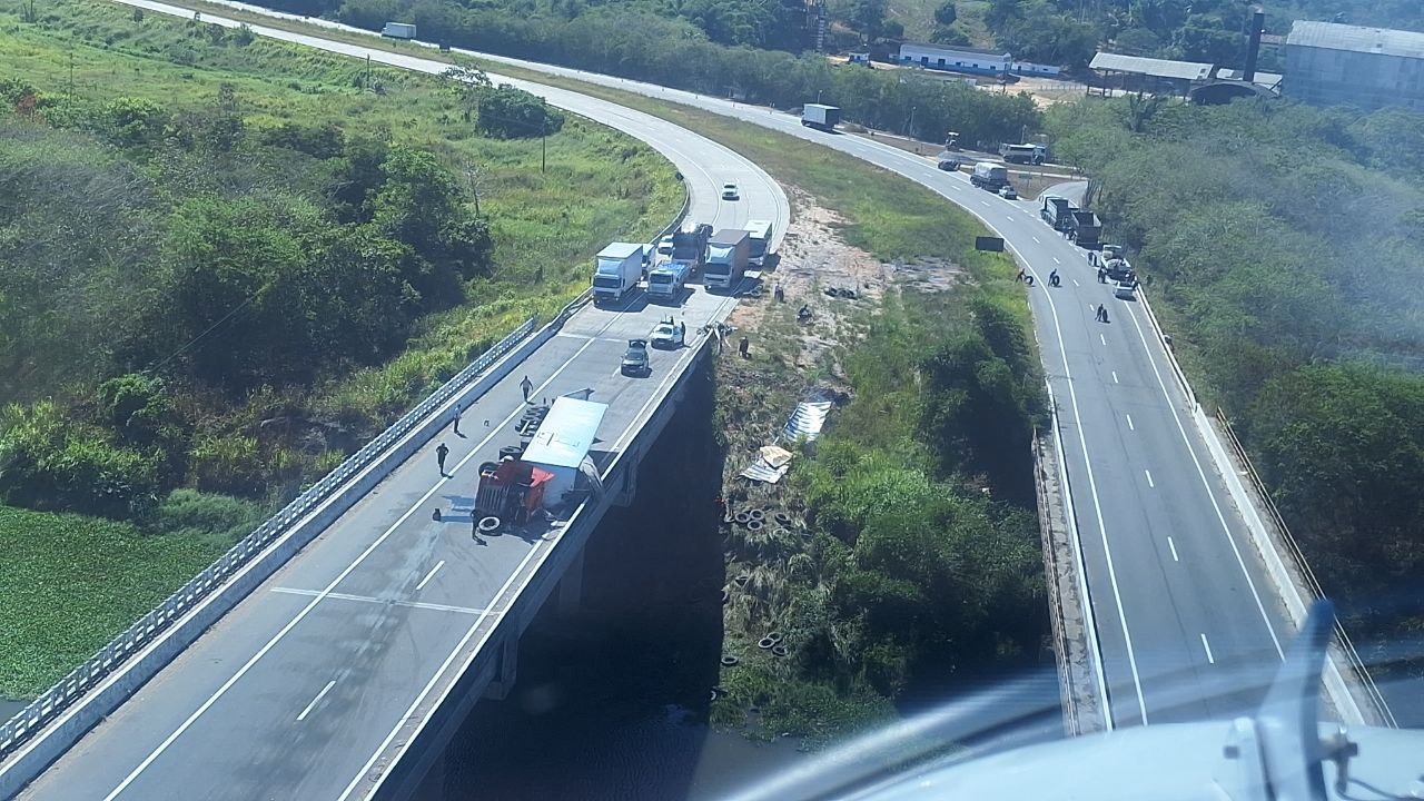 Segundo a Polícia Rodoviária Federal (PRF), o tombamento foi registrado no quilômetro 107 da rodovia federal. Ainda não há informações sobre o que teria provocado o acidente.