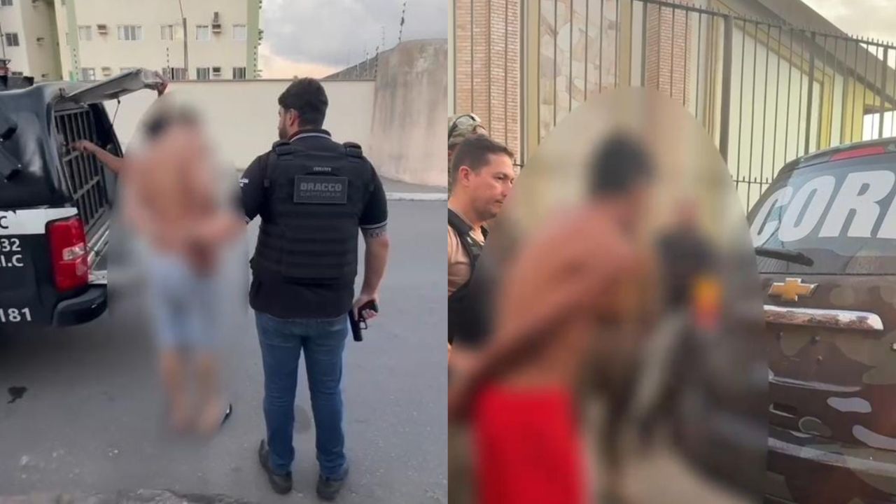 Durante a ação, realizada em Maceió, foram cumpridos dois mandados de prisão e três mandados de busca e apreensão. Nas buscas, aparelhos celulares foram apreendidos nas residências dos suspeitos. Veja o momento da prisão e da apreensão: