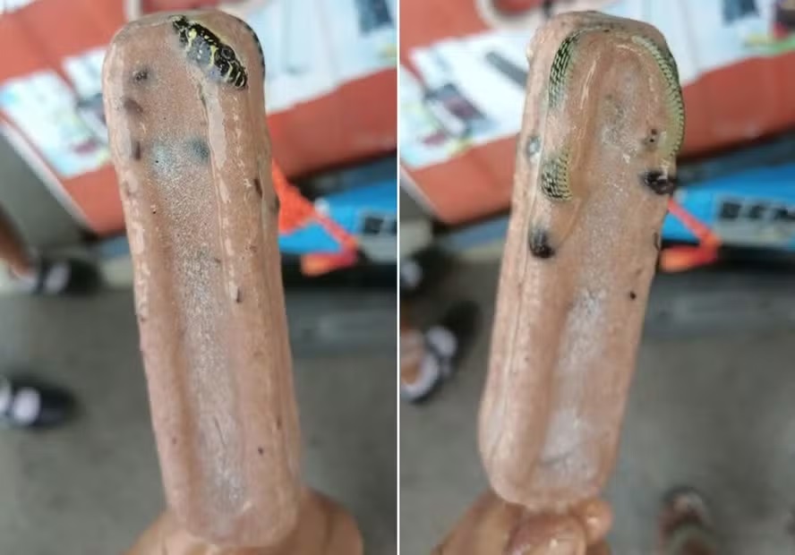 No Brasil foi uma barata. Já na Tailândia, um homem encontrou uma pequena cobra venenosa no picolé que ele havia comprado na província de Ratchaburi de um vendedor de rua.