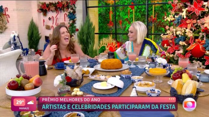 “Antigamente, a gente mandava o bolo de volta para a cozinha. Mas aí, ficava uma frustração no estúdio. Então esse é um jeito carinhoso de falar para os meninos que não vamos passar vontade aqui. Estão trabalhando desde as 5h da manhã. A gente libera a mesa e o pessoal come”, disse ela após uma gravação.