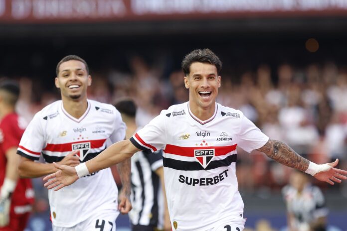 O São Paulo seguia em cima e parecia perto de construir uma goleada quando o Santos “achou” um gol. João Schmidt cruzou, Léo Godoy cabeceou e a bola bateu no braço de Enzo. Pênalti marcado e convertido por Tiquinho Soares. 2 a 1.